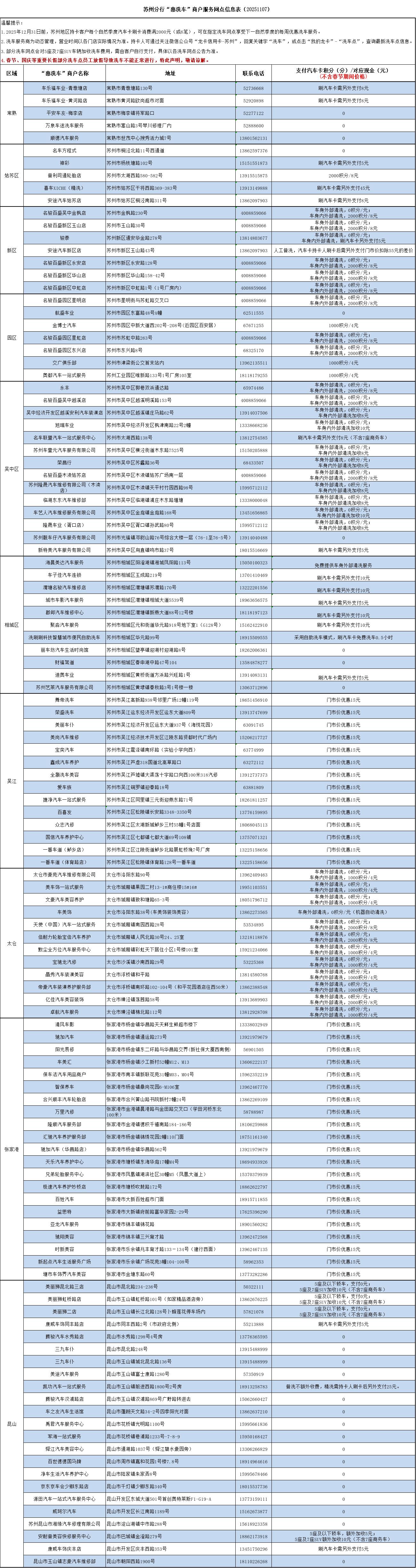 苏州分行“惠洗车”商户服务网点信息表