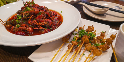 臭豆腐、姊妹团子、红烧蹄子、龙脂猪血、小龙虾……色香味俱全,每道菜都有来历,每道菜都有特别的味道。难怪这里经常是一座难求。只是那色味诱人的小龙虾,我吃了三只就辣得满头大汗,只好败下阵来。老友也是东北人出身,她说她的饮食习惯已经被同化了,这点辣味真的不算什么。虽然,不太敢吃辣的食物,但我却喜欢上这种感觉:坐在一个古香古色的座位上,几份精致的小吃,入口回味悠长。举一杯酒,与老友的茶水轻轻一碰,那些关于爱情关于友情的往事,就在两人的叙说中氤氲开来。时光慢慢倒流,人生经历铺展开来,故事长长短短起起伏伏在缥缈的热气中,跨越时光的友情也在不知不觉中浓厚。戏台上还有人在咿呀着湘言湘语的歌词,听不懂,却分明是佐酒的歌谣,有些摇头晃脑的韵律。我想,那些古代的帝王将相,面对如此的良辰美景、经年老友,即便只是一个过客,怕也要和我一样,本以为“不可不醉,不可太醉”,却已是“酒不醉人人自醉”吧。