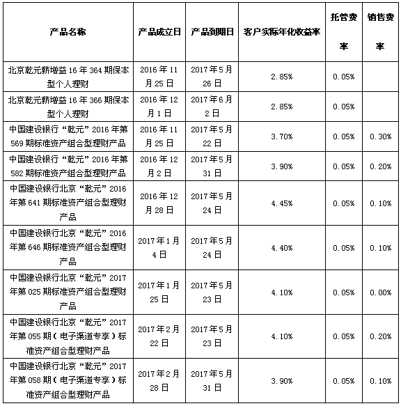 根据与投资者的约定,中国建设银行发行的下列理财产品已经到期并完成资金兑付,现将有关情况公告如下: