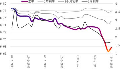 货币市场:8月上旬,市场资金面较预期偏紧,央行公开市场操作少量净回笼。上周货币市场利率先升后降,波动不大。截至周五,7天回购利率较前一周五上行3BP至3.07%。