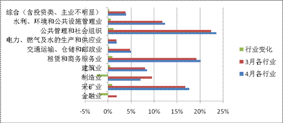 (三)融资类资产的行业占比构成及当月增减变化情况