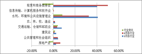 (三)融资类资产的行业占比构成及当月增减变化情况